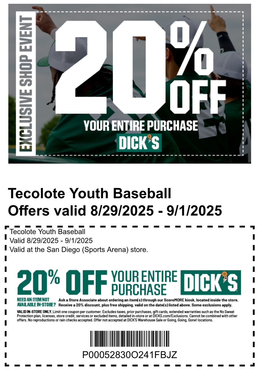 We’re looking forward to another great season of baseball at Tecolote and can’t wait to welcome both returning and new players to the field!